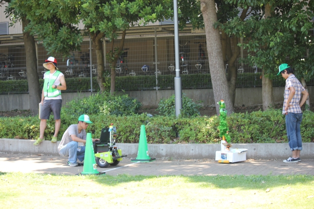 この日は、真夏の強い日差しで、大変暑い環境下でした。8月末のまつりつくばの準備で、大清水公園のカピオ前広場が使えないため、各チームのバックヤードは大清水公園内の芝生の上に作りました。中国の北京大学チームまで含み、22のチームにご参加いただき、有意義な実験ができたと感じいます。